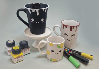 Tassen und Schalen aus Porzellan werden ganz individuell bemalt.